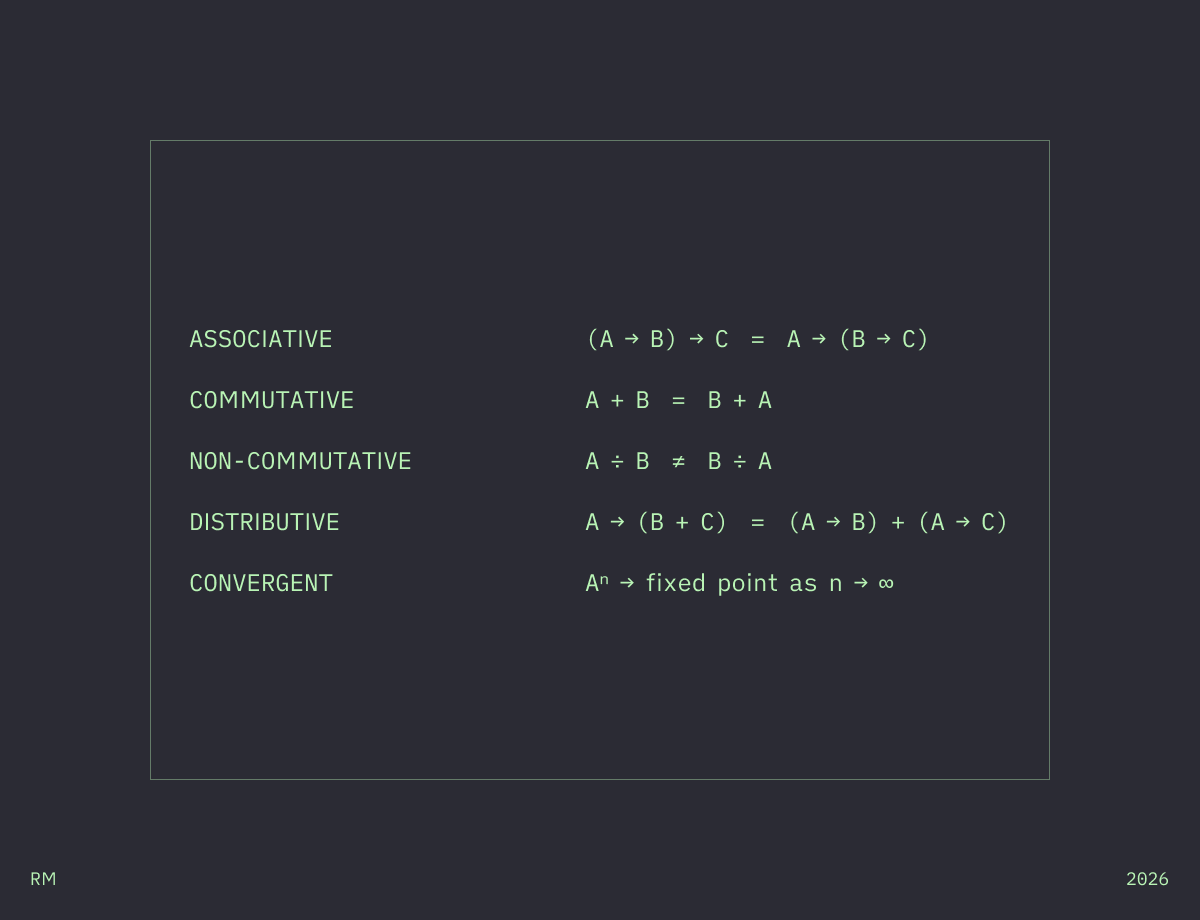 Mini demo (bigger one in exploration): https://github.com/moldandyeast/agentic-algebra